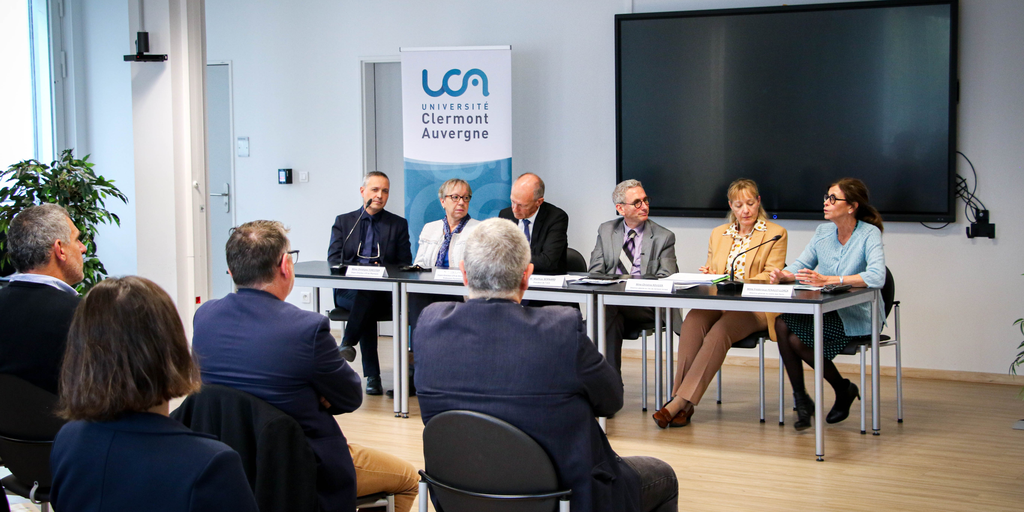 Le jeudi 23 octobre, une conférence de presse s’est tenue en Salle des Thèses pour présenter cette initiative en présence des trois Doyens-Directeurs de nos UFRs de Santé : M. Emmanuel Nicolas - Doyen-directeur de l’UFR d’Odontologie, Mme Christiane Forestier - Doyen-directeur de l’UFR de Pharmacie, Pierre Clavelou - Doyen-Directeur de l’UFR de Médecine et Professions Paramédicales, Mathias Bernard - Président de l’Université Clermont Auvergne, Christine Rougier - Directrice générale adjointe du CHU de Clermont-Ferrand et Frédérique Penault-Llorca - Directrice générale du Centre Jean Perrin.